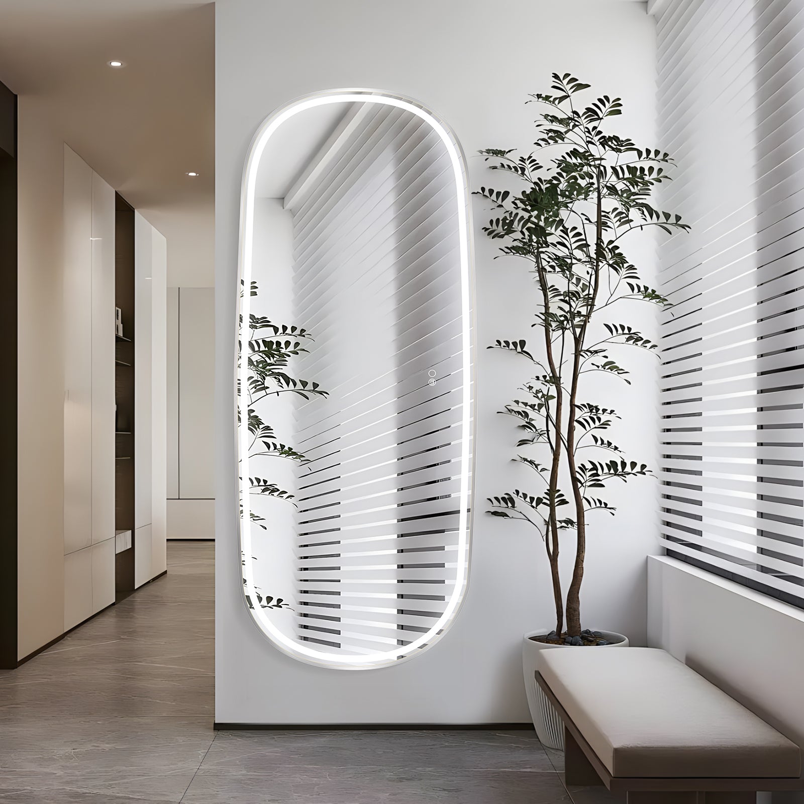 COLINE 26" x 63" Rounded Silver Metal Framed LED Mirror